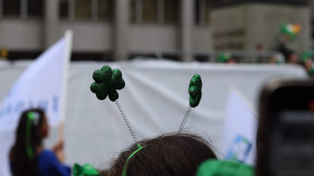 Green attire, shamrocks (often blessed and worn on lapels), and rituals like “drowning the shamrock” in a drink before tossing it for luck are all cherished features